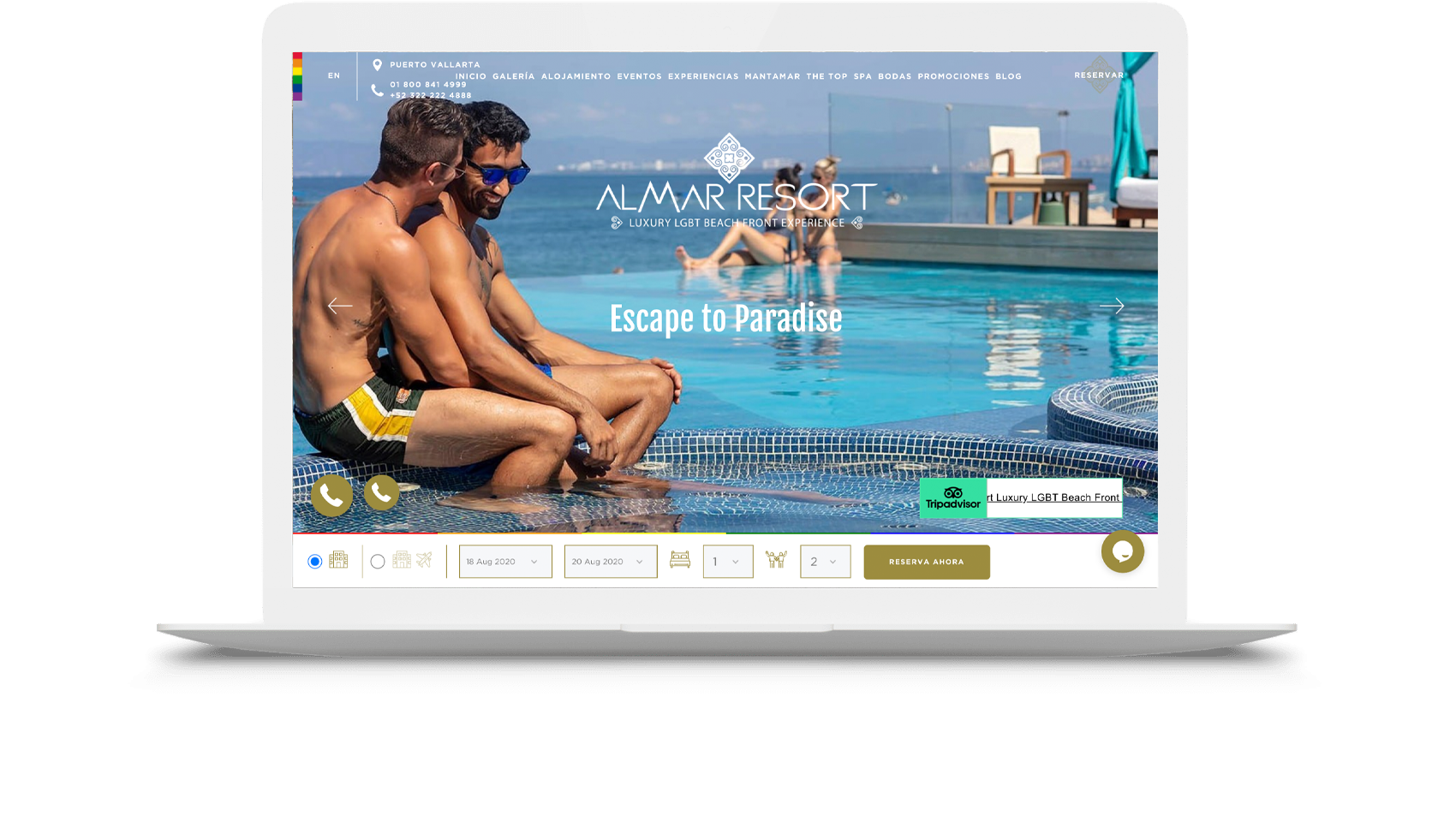 Almar Resort Luxury LGBT Beach Front Experience is a hotel where desire and intimacy meet in an exclusive atmosphere. Located on one of the most beautiful beaches in Mexico, Almar is the only luxury LGBT hotel located in the Downtown of Puerto Vallarta. They approached us with the need to renew their commercial strategy and promote online reservations in a direct way. Today, after two years of working together, they have multiplied their profits. How did we do it?